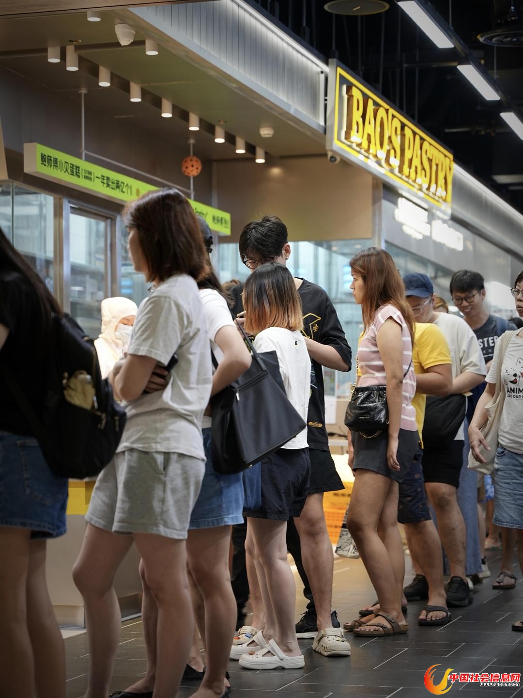 2025年5月16日,新加坡东部重要商圈Paya Lebar Square的鲍师傅门店吸引了大量消费者,现场人气高涨。董闻达在排队等待了几十分钟后,终于如愿以偿地买到了“人生中的第一份海外版鲍师傅”。