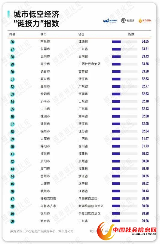 “本次发布的低空经济‘链接力’指数2.0,不仅是榜单范围的扩展(从30强到50强),更是一个‘动态导航仪’。通过对主要城市低空经济“画像”,报告有力地呈现了百舸争流中‘空中疆域’的变化趋势。”火石创造创始人、CEO杨红飞分析,低空经济的竞争本质是城市“链接资源—赋能场景—反哺技术”的闭环能力之争。