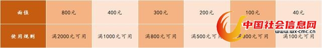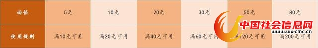 健身类体育消费券:发放满10元减5元、满20元减10元、满40元减20元、满60元减30元、满120元减50元、满200元减80元等面值的通用券。