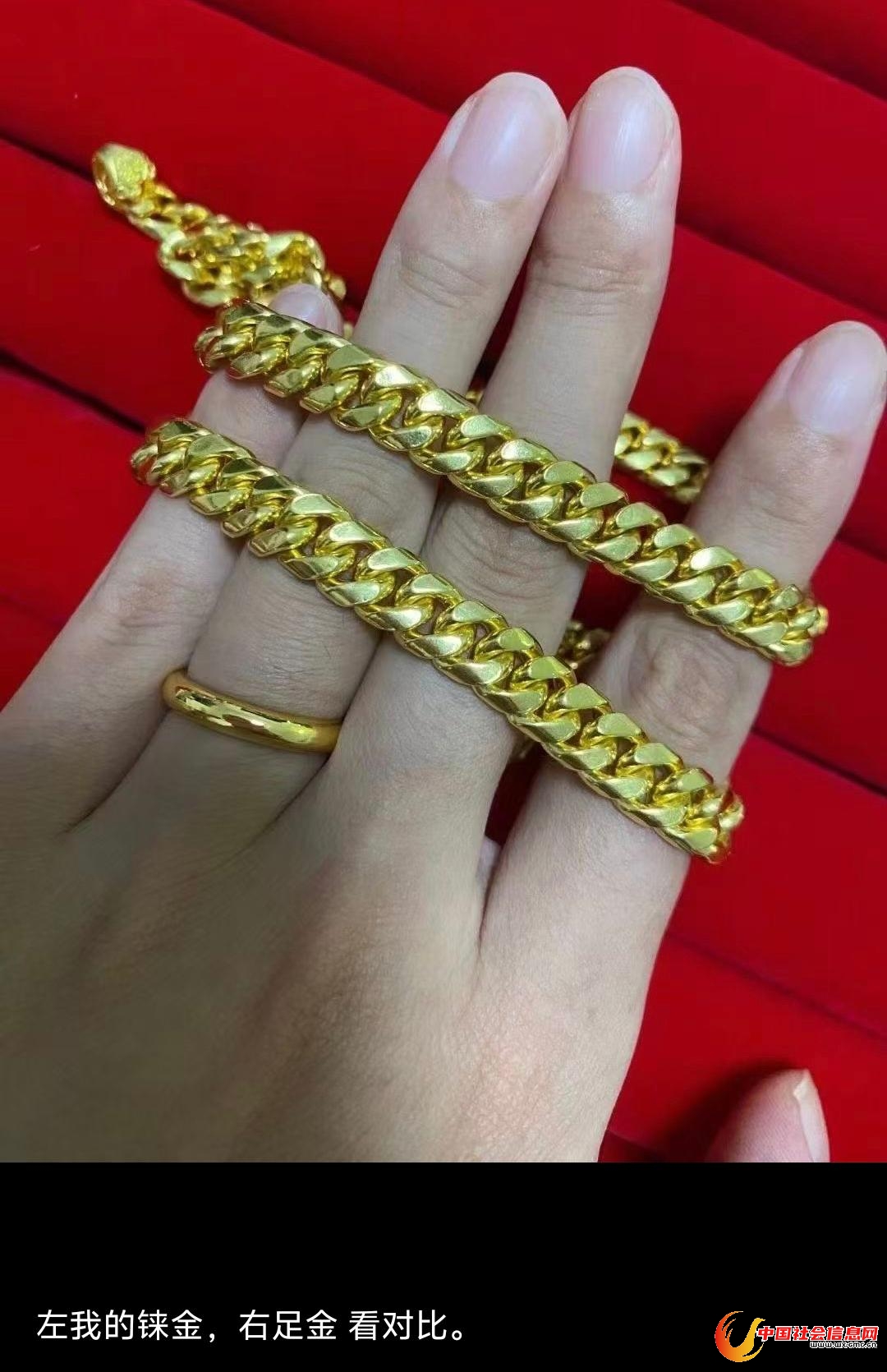 从王宏提供的照片、视频来看,无法看出“铼金饰品”和黄金饰品的差别。