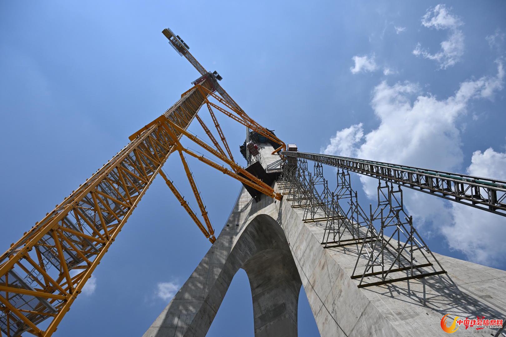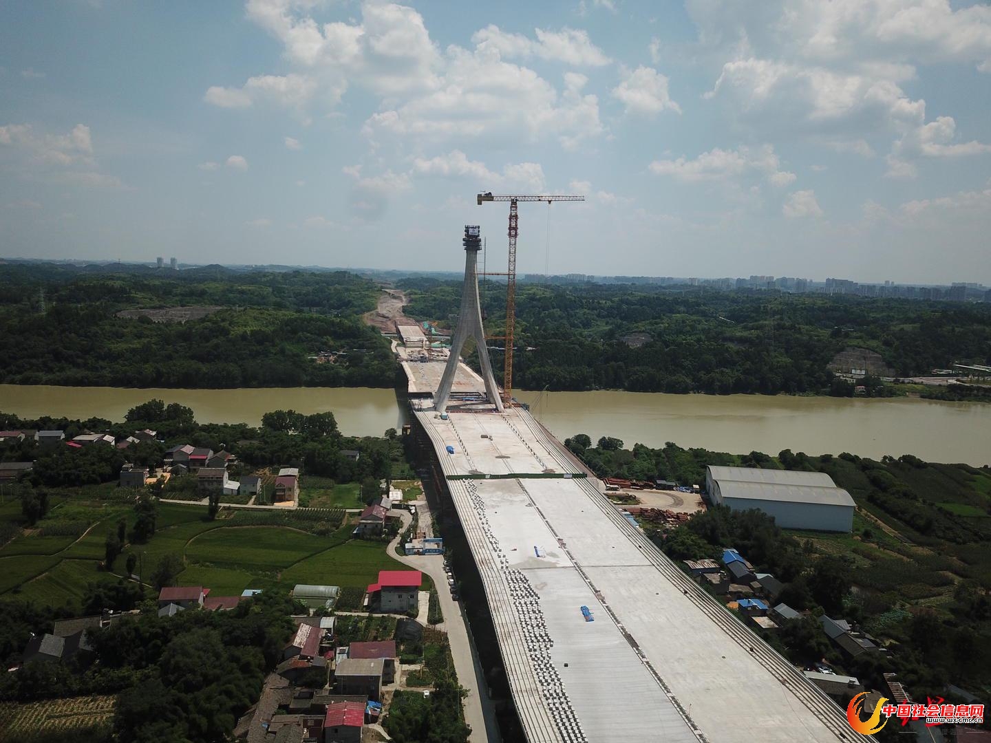 ▲成都东西城市轴线沱江大桥主塔精准封顶