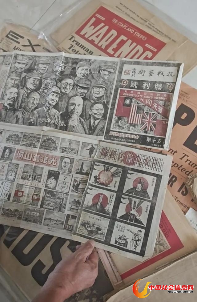 郑州红色收藏家杨翔飞收藏的数百件老报纸、画报,就生动记录了这一幕,“‘抗战胜利’是我收藏的一大核心主题,藏品多为80年前世界各国出版的报纸刊物,还有一部分是国内各大媒体、出版社为此出版的号外、书籍等。”