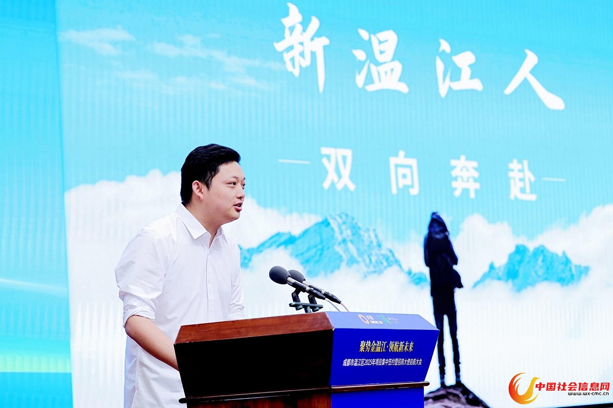 “温江只服务不打扰的态度,四季宜人的气候,清新的空气会让人不自觉地爱上温江,大量的院校也为我们企业提供了人才储备和客户群体”,成都弱水科技有限公司总经理龙宇就《新温江人的双向奔赴》进行主题分享,从落地项目情况、温江对项目的支持、企业视角下看温江的投资优势等几个维度分享了对温江的理解与感悟。