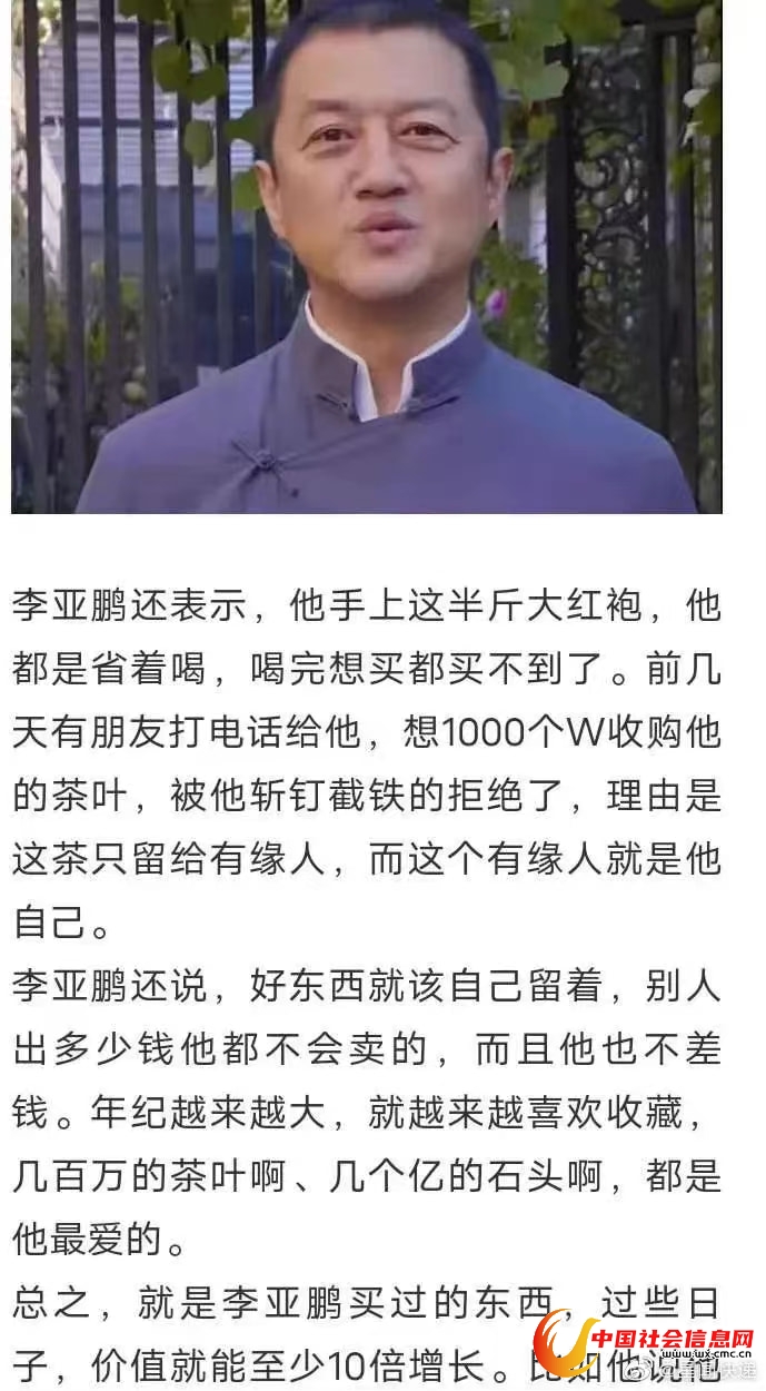 围绕在李总身上的装逼段子还有很多,比如他手上有半斤珍贵的大红袍,有人想一千万收购被拒绝了。