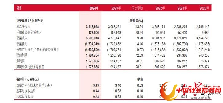 数据显示,去年泸州银行实现营收52.09亿元,同比增幅9.2%,其中利息净收入35.19亿元,同比增幅13.94%;净利润及归母净利润均为12.76亿元,同比增幅28.3%。