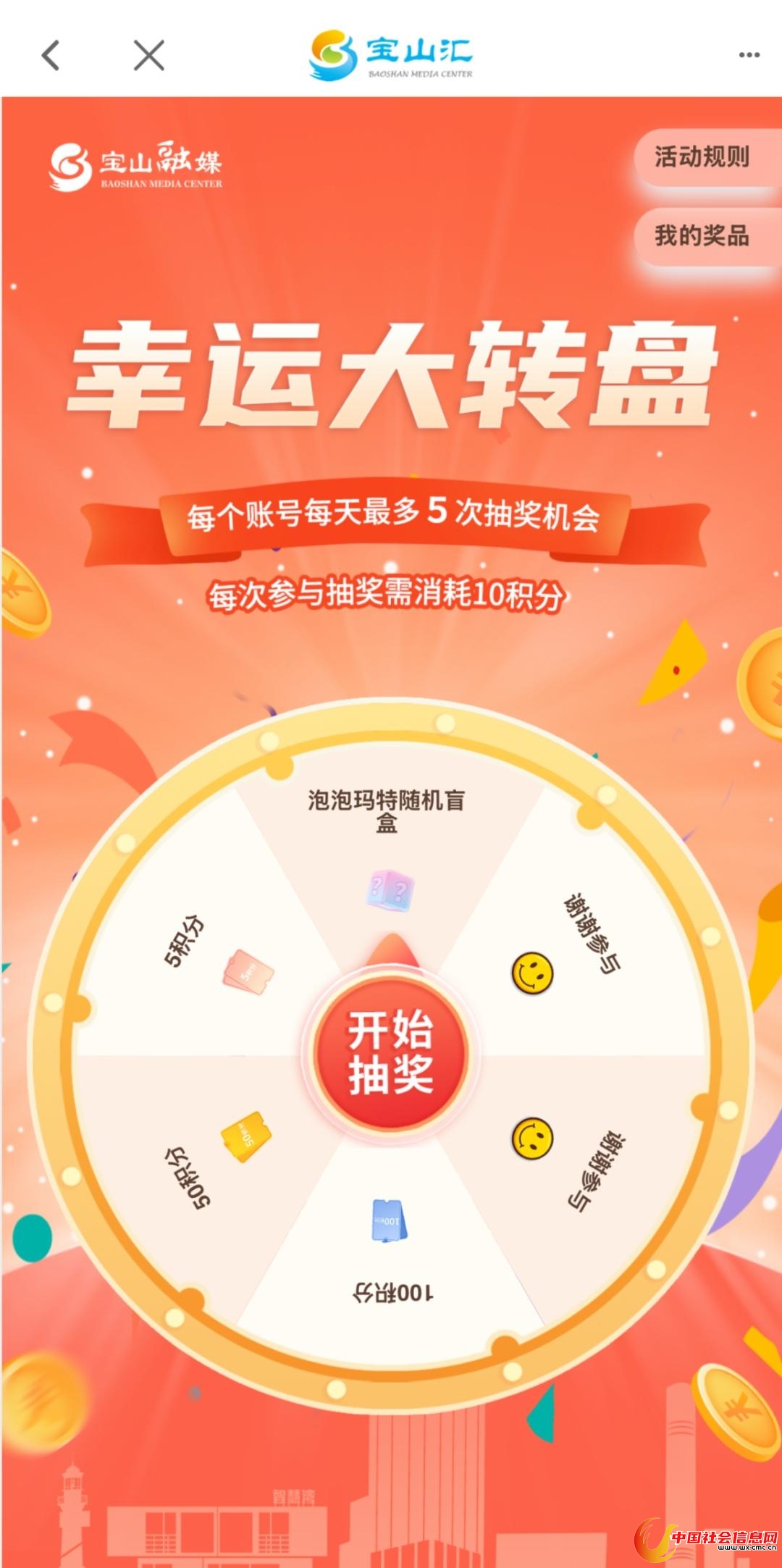 每次参与幸运大转盘需消耗10积分
