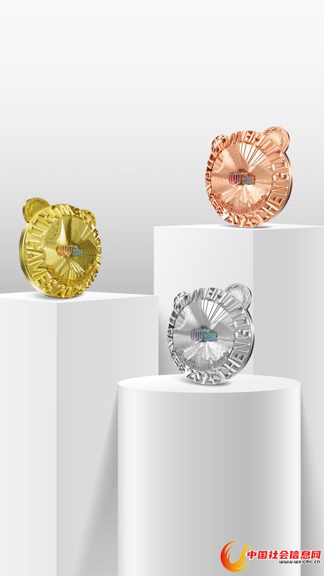 图为成都世运会金、银、铜牌效果图。新华社发(成都世运会执委会供图)