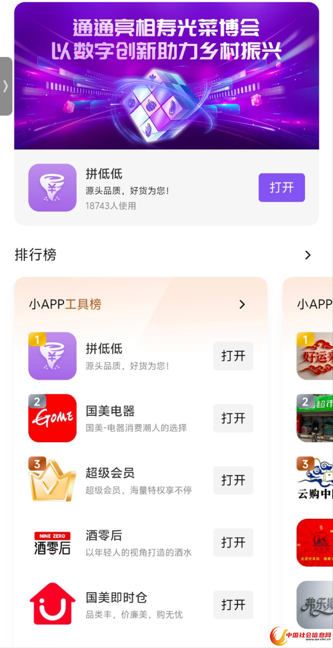 通通APP内含有多个小APP,如拼低低、国美电器、国美即时仓等。
