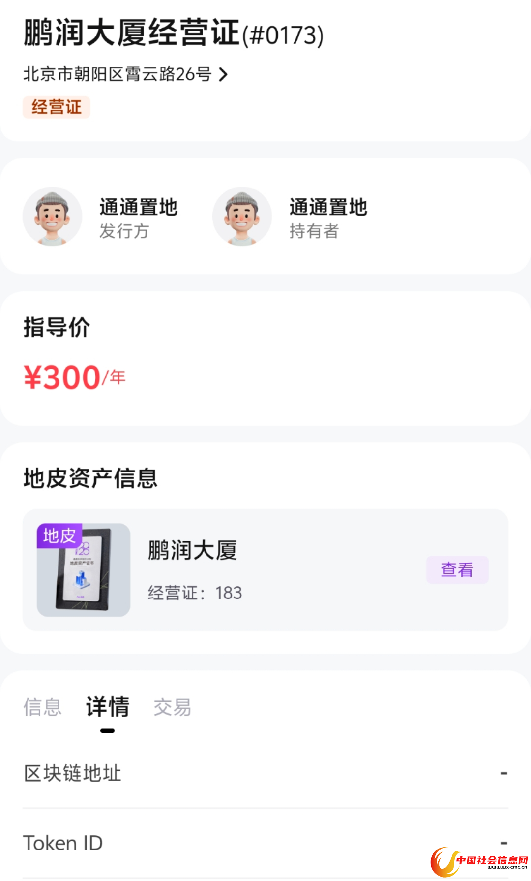 在待售经营证的详情页面,有区块链地址等栏目,但上面均没有信息。