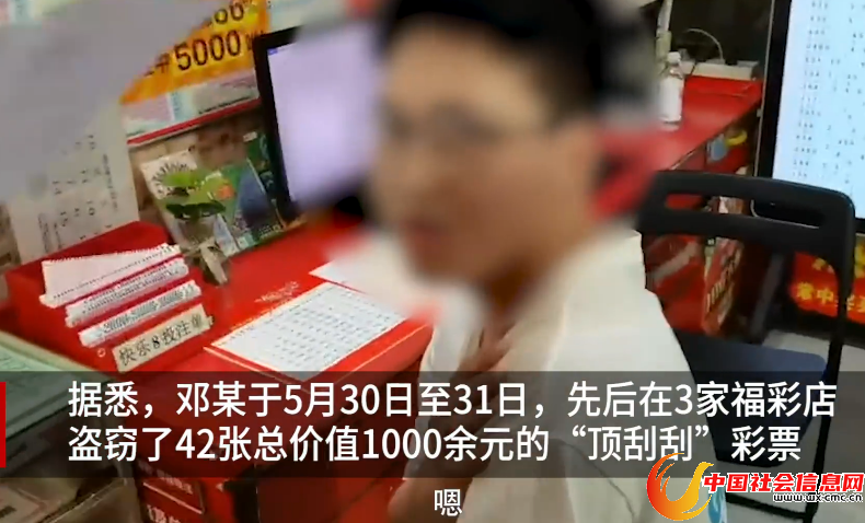 据悉,邓某于5月30日至31日,先后在3家福彩店盗窃了42张总价值1000余元的“顶刮刮”彩票,并兑换了中奖金额830元,6月2日,邓某再次进入店内,没想到被店老板抓了个正着。