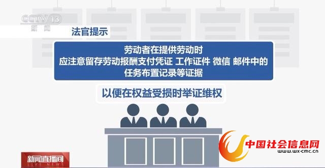 法官特别提示,劳动者在提供劳动时,应注意留存劳动报酬支付凭证、工作证件、微信、邮件中的任务布置记录等证据,以便在权益受损时举证维权。
