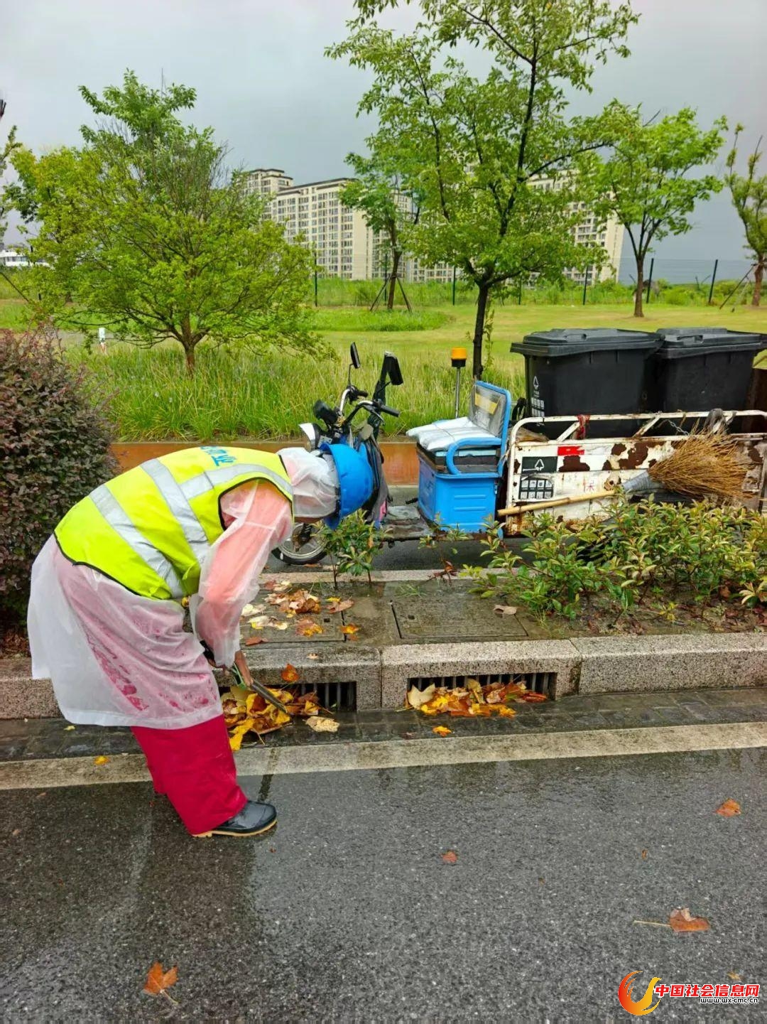 区绿化市容局工作人员严阵以待,顶风冒雨穿梭在大街小巷,清理被雨水冲倒的树枝杂物,保障道路畅通。