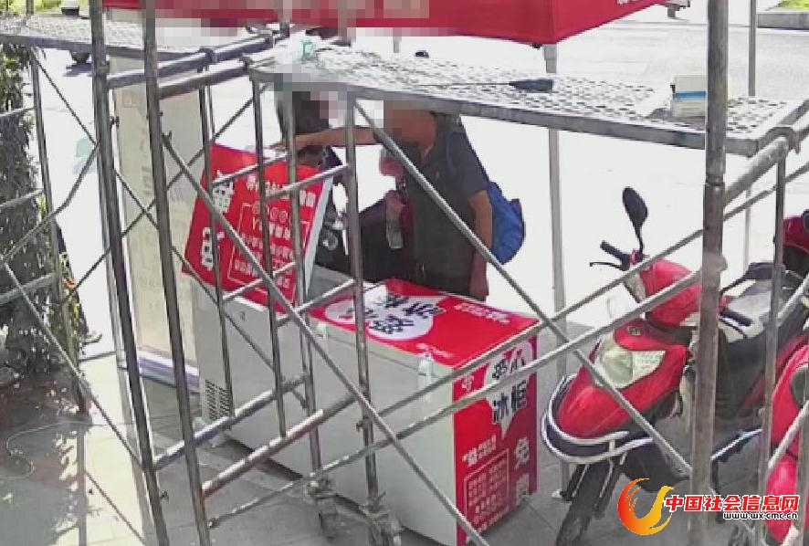 ▲监控视频显示,多人在爱心冰柜取矿泉水往袋子里装 受访者提供视频截图