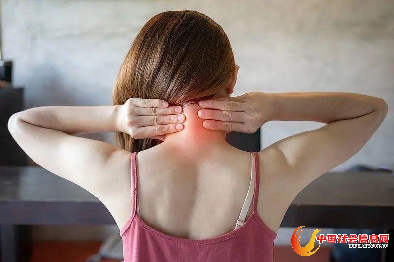 表现为颈部酸痛、僵硬,颈部屈曲受限。