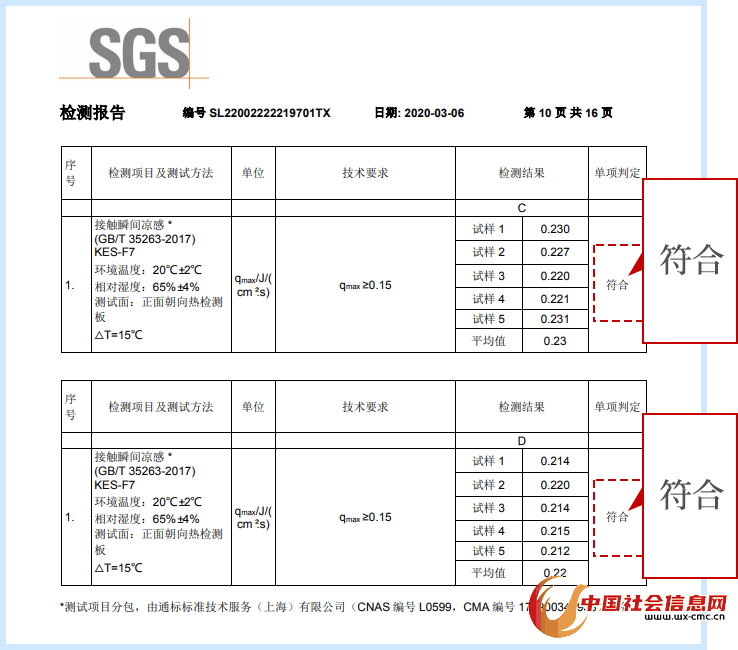 愉悦之家凉感被,有SGS认证报告:具备接触瞬间凉感,数值高达0.23(行业标准0.15)