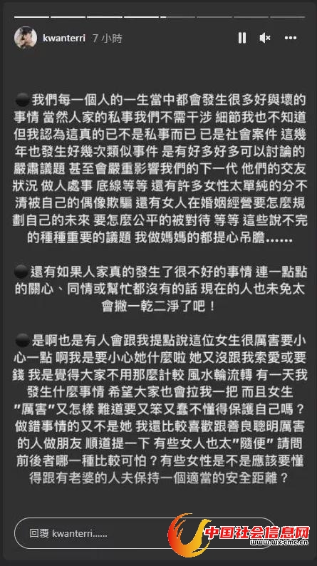 目前已经踢爆的传闻里不止小三,连小四小五都有,据说是汪给别的女人转账被小三看见,然后闹翻了。