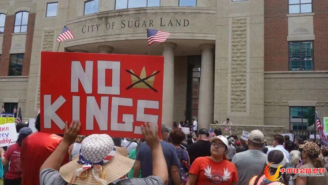 6月14日,在美国得克萨斯州休斯敦,人们参加“不要国王”抗议活动 图:新华社