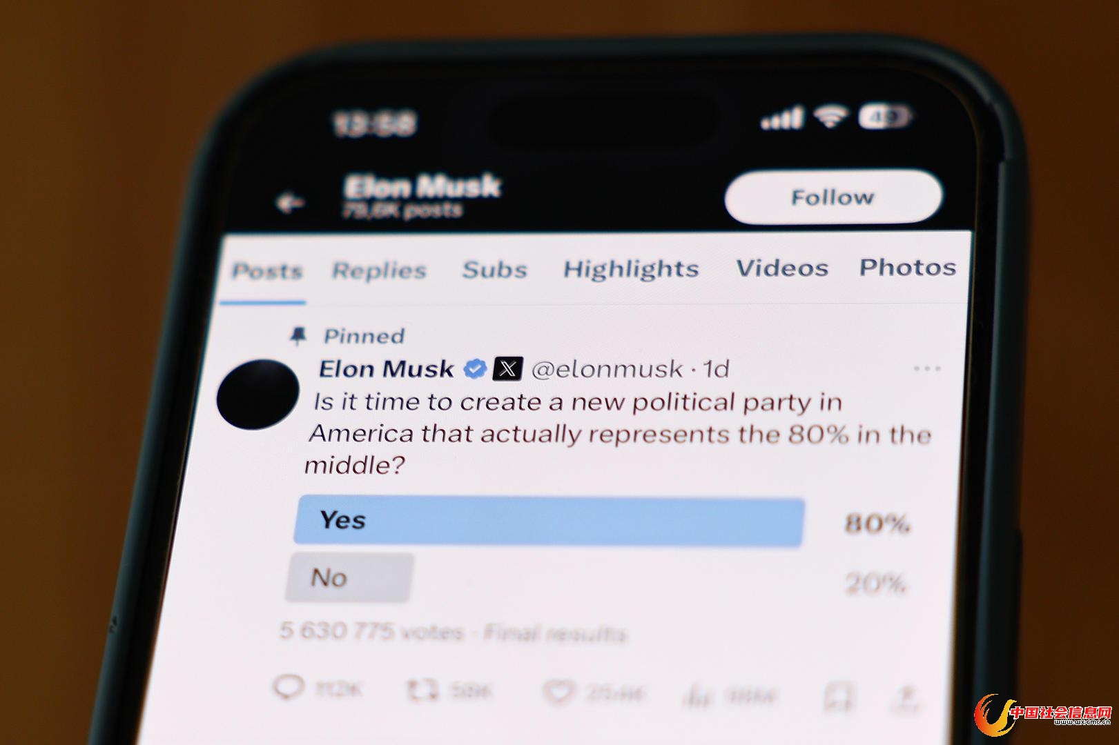 马斯克发起的关于成立美国新政党的投票 图据视觉中国