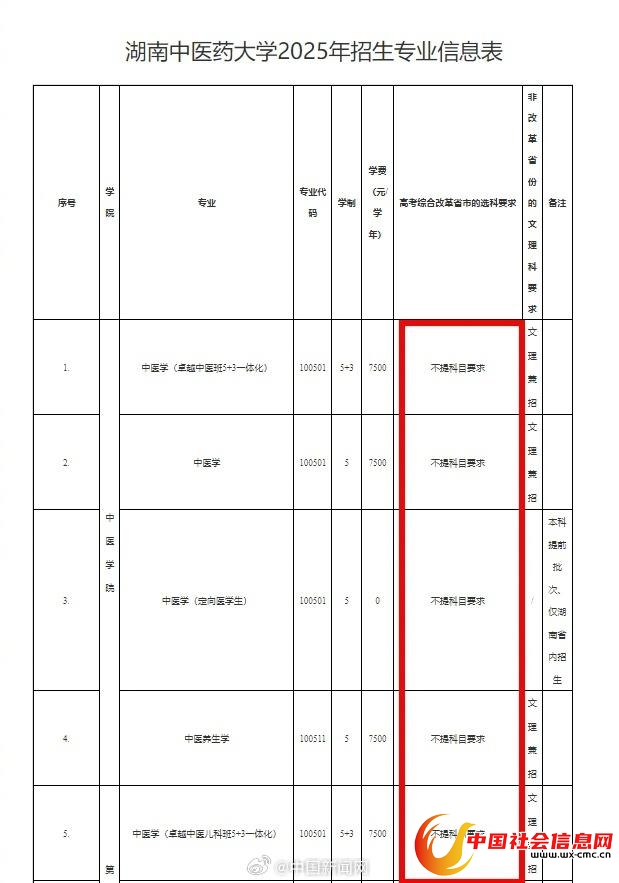 湖南中医药大学招生办工作人员称,目前该校只开放了中医类招生文科科目学生,西医暂时没有开放,并且这不是该校第一年招收文科科目考生,在2023年时就已经招收过。河北中医药大学招生办工作人员同样表示,在官网上可以查到其学校近几年都招收过文科科目的中医学考生,并非今年第一次实施该政策。