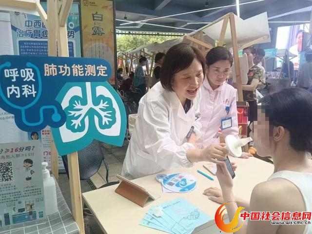 王瑾主任在义诊时,辅导居民做好肺功能测试。张慧芬 摄