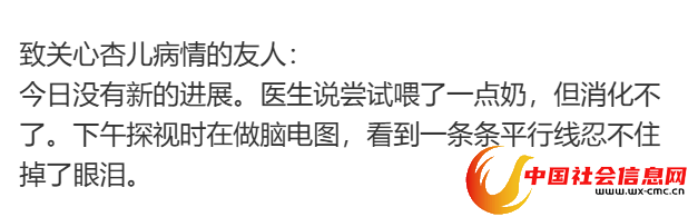 6月29日,当事人更新了近况,称孩子脑电图基本是平的,不能自主呼吸,生命体征也在陆续减弱,“医生好像已经给我宣判了死刑”。目前仍在全力救治中。