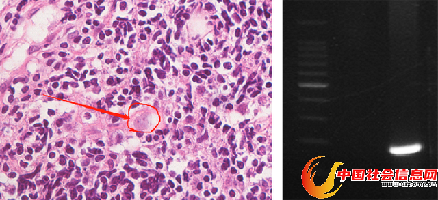 鼻组织显微镜下病理图(左) 狒狒巴拉姆希阿米巴PCR电泳图(右)