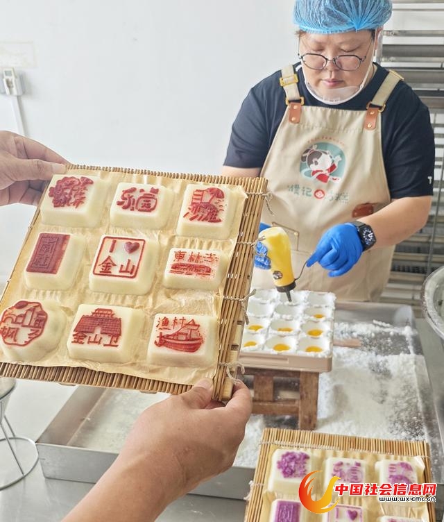 这款糕点不仅延续了金山方糕绵软香甜的传统风味,更以巧思将金山的自然风光与人文地标“烙”于糕体之上,成为兼具文化内涵与美食体验的网红产品,吸引众多市民专程前来打卡购买。