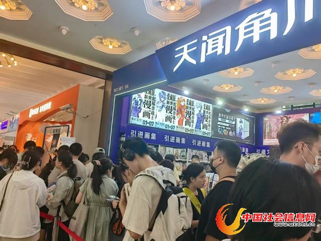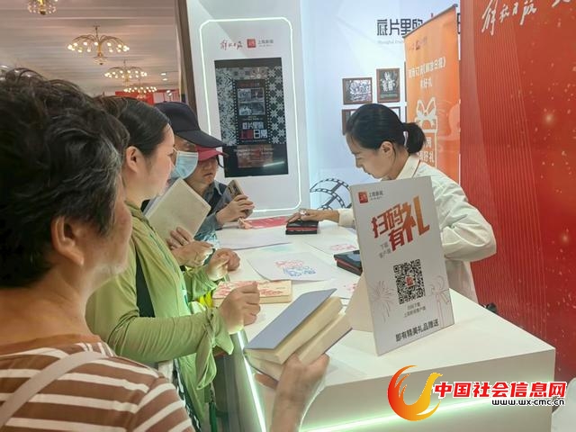 上海书展首日,记者走入上海展览中心,户外热浪滚滚不及现场购书人热情。场馆里人流如织,付款、盖章处常有排队。为了吸引更多关注,卖书人纷纷“卷”起来。出版社工作人员一手举着二维码,一手举着各式“无料”(免费周边)在展台前吆喝。全场打折、扫码关注领取礼品、盖章等都是书展标配,还有人不断加码。七猫小说展台装了一块大型竖屏,放起了小说改编短剧。博集天卷展台的挂壁电视上循环播放暑期档电影《长安的荔枝》幕后特辑,下面摆满马伯庸同名原著小说。