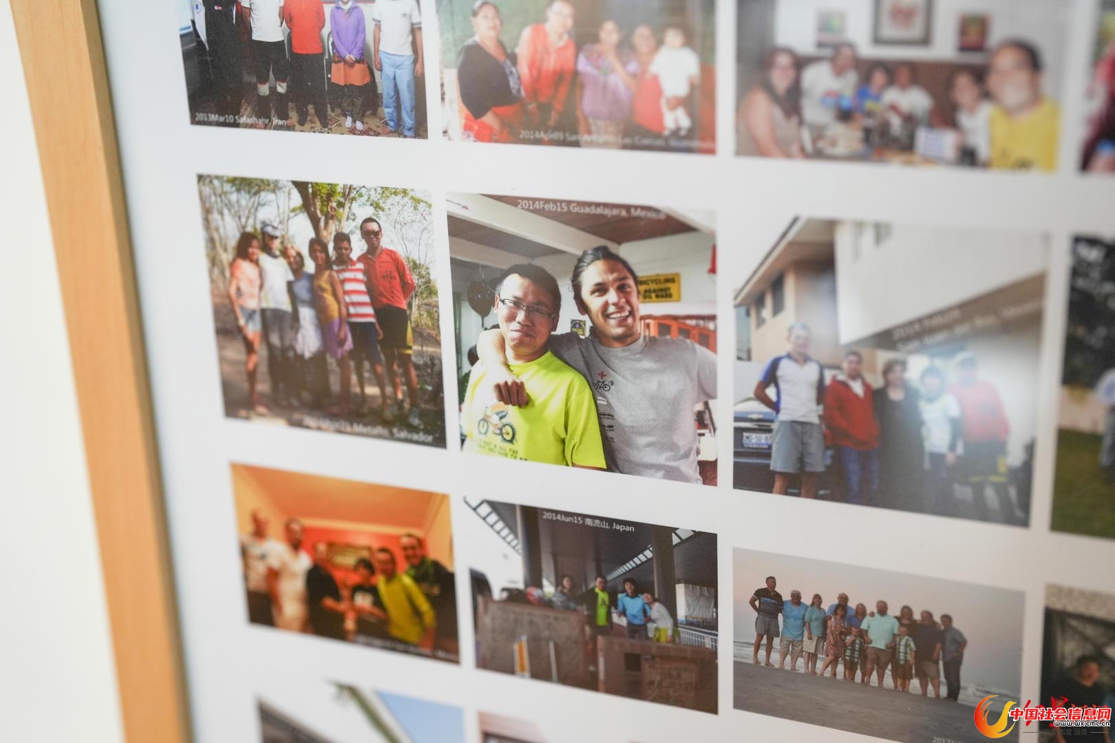 一家人旅行中的纪念,是和不同国家的人的合影,“这里有和75个家庭的合影,都是我们在旅行时帮助过我们的家庭,比如美国、伊朗、德国等地的家庭。像是我们住在他们家里,我就会向他们介绍成都的历史文化,我的老婆就会用水煮牛肉和糖醋排骨来征服他们的胃。”