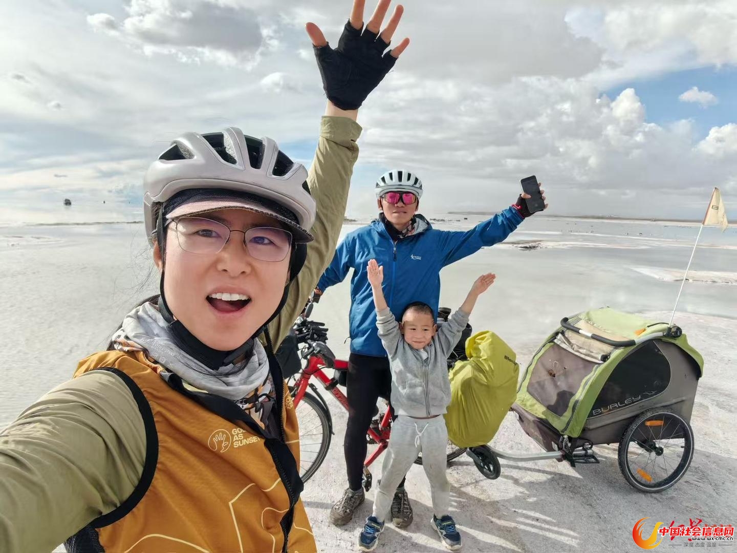 ▲李瑞一家骑行到玻利维亚的乌尤尼盐湖