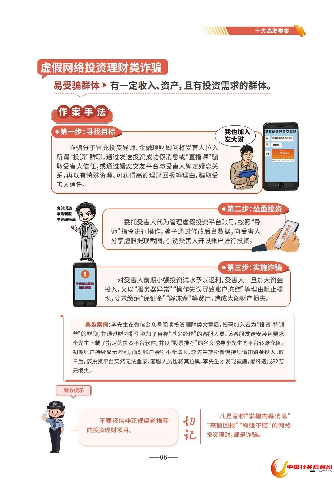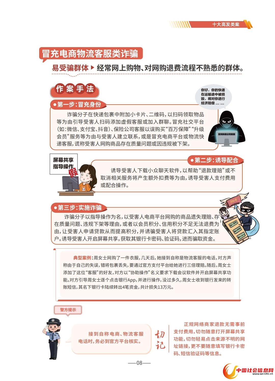 近日,公安部刑侦局最新发布《2025版防范电信网络诈骗宣传手册》,其中提示:防范网络电信诈骗,要注意十大高发类案。