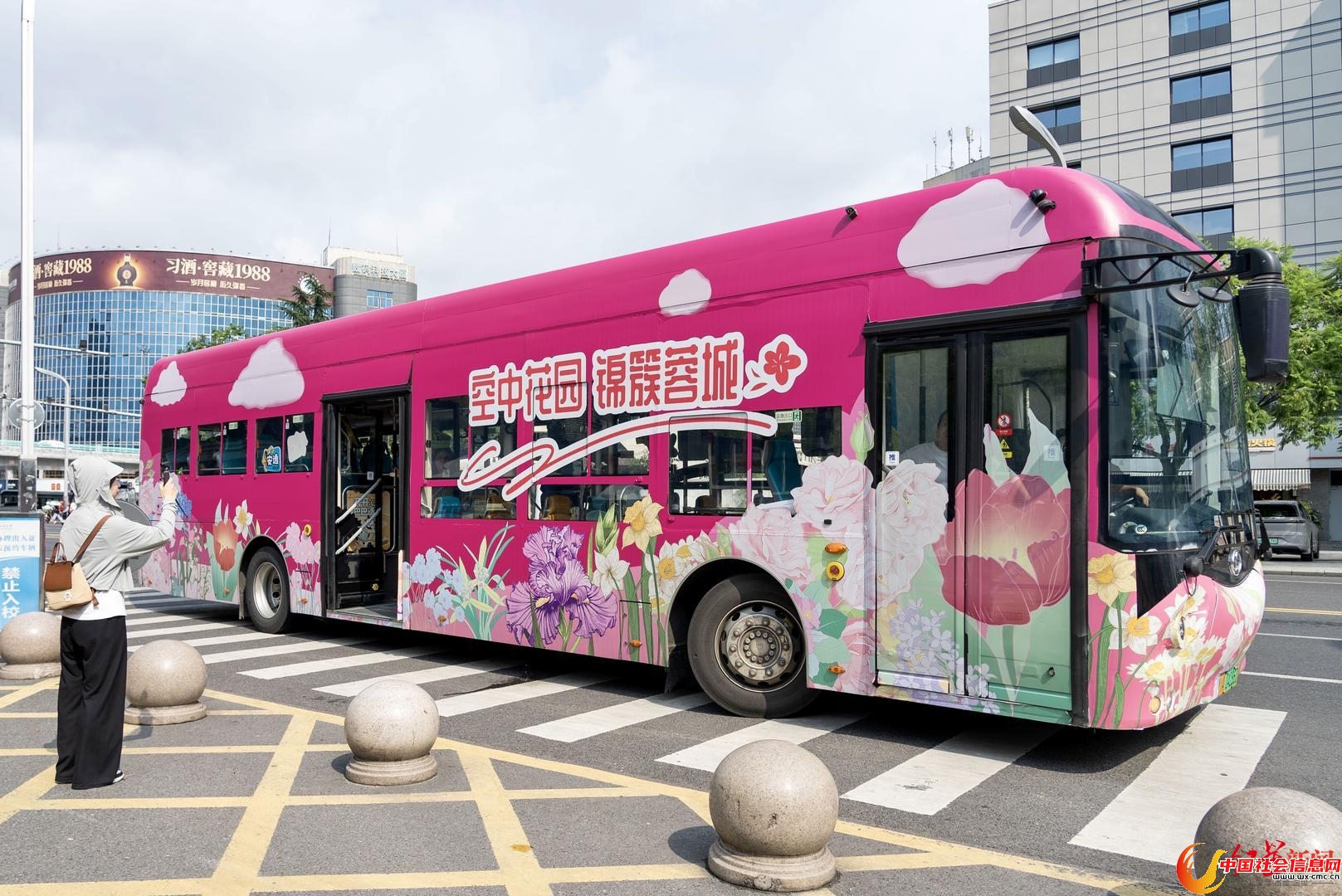 拍照完成后,一行20余人的毕业生上到了这趟公交毕业仪式现场。从车身的装饰就能感受到这趟车的青春气息,车身以粉色花进行装饰,路过的学生或者路人都忍不住停下合影。