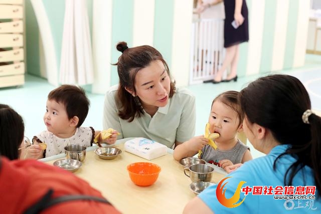 当日,上海首个科创园区嵌入式托育园开学,首批14名宝宝以全日托和即时托的方式入托,让职场父母实现“上班送娃,下班接娃”的便捷生活。