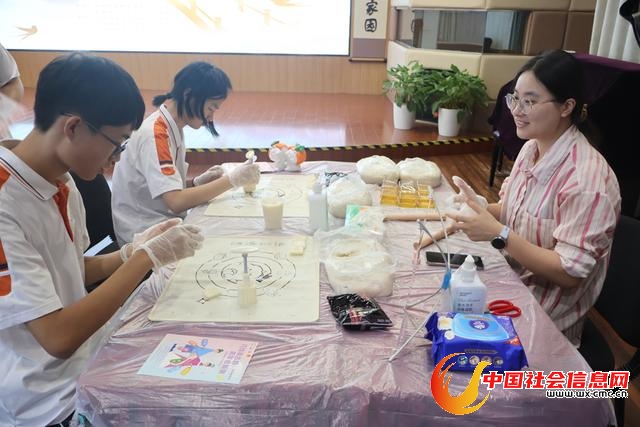 穿针引巧区,参与者用古法五彩丝线完成穿孔挑战,简易模式考验耐心,进阶模式激发巧思;唐菓工坊内,青年们揉捏可食用面团,包裹豆沙馅料后压入模具,制作出精美的唐代点心“唐菓子”,在劳动中体会“一粥一饭当思来之不易”的深意;诗词邮局前,一张张写满心意的明信片被投入邮筒,既有寄给远方亲友的思念,也有写给未来自己的期许,传统书信文化与现代情感表达在此交融;信物手作区,青年们用彩色丝线编织“同心结”钥匙扣,将文化记忆与创新设计巧妙结合;巧手穿珠挑战中,参与者用筷子夹取光滑陶珠,按指定颜色顺序穿成手链,限时2分钟的规则让不少人直呼“手忙脚乱却乐在其中”;智趣投壶区则将传统游戏与价值观教育结合,壶身贴有“诚信”“创新”等标签,投中者需结合生活实例阐释含义,实现“知行合一”的深度学习。