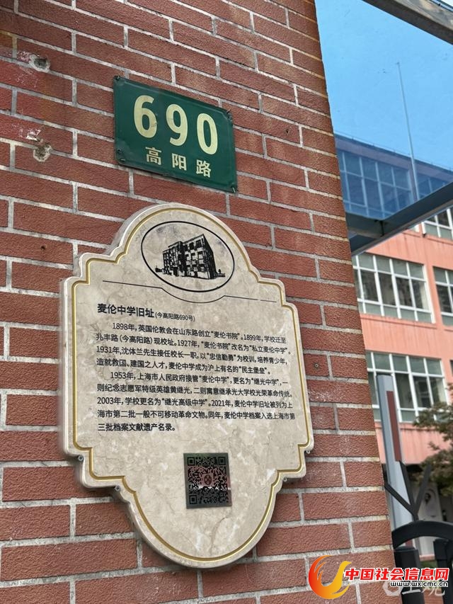 继光高级中学门口的铭牌记录前身麦伦中学历史。施晨露摄