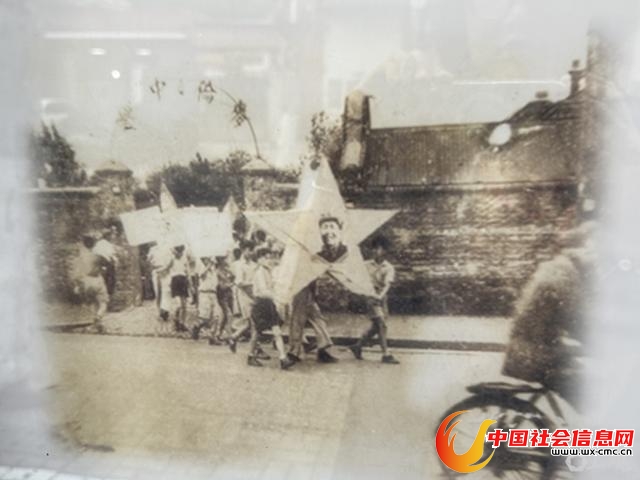 继光高级中学橱窗展示,麦伦中学学生抬着秘密绘制的领袖画像迎接上海解放。施晨露摄