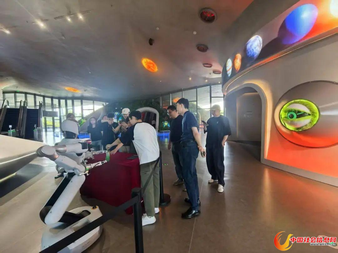 步入场馆,首先来到的是和“三体”ip全球独家版权方三体宇宙合作打造的沉浸式互动娱乐体验空间——“三体·未来学院”,扑面而来的未来感仿佛置身于浩瀚星际。“整个场馆就是科技感很强,一走进来这种光影的效果和声效,乘坐电梯的时候也是感觉一下子走进了时空隧道,非常沉浸其中。”上海人民广播电台记者赵颖文说道。