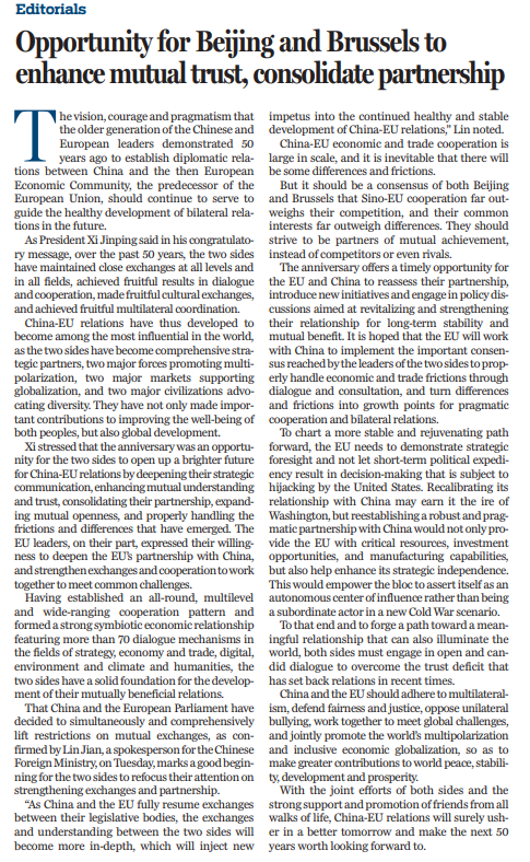原文标题:Opportunity for Beijing and Brussels to enhance mutual trust, consolidate partnership