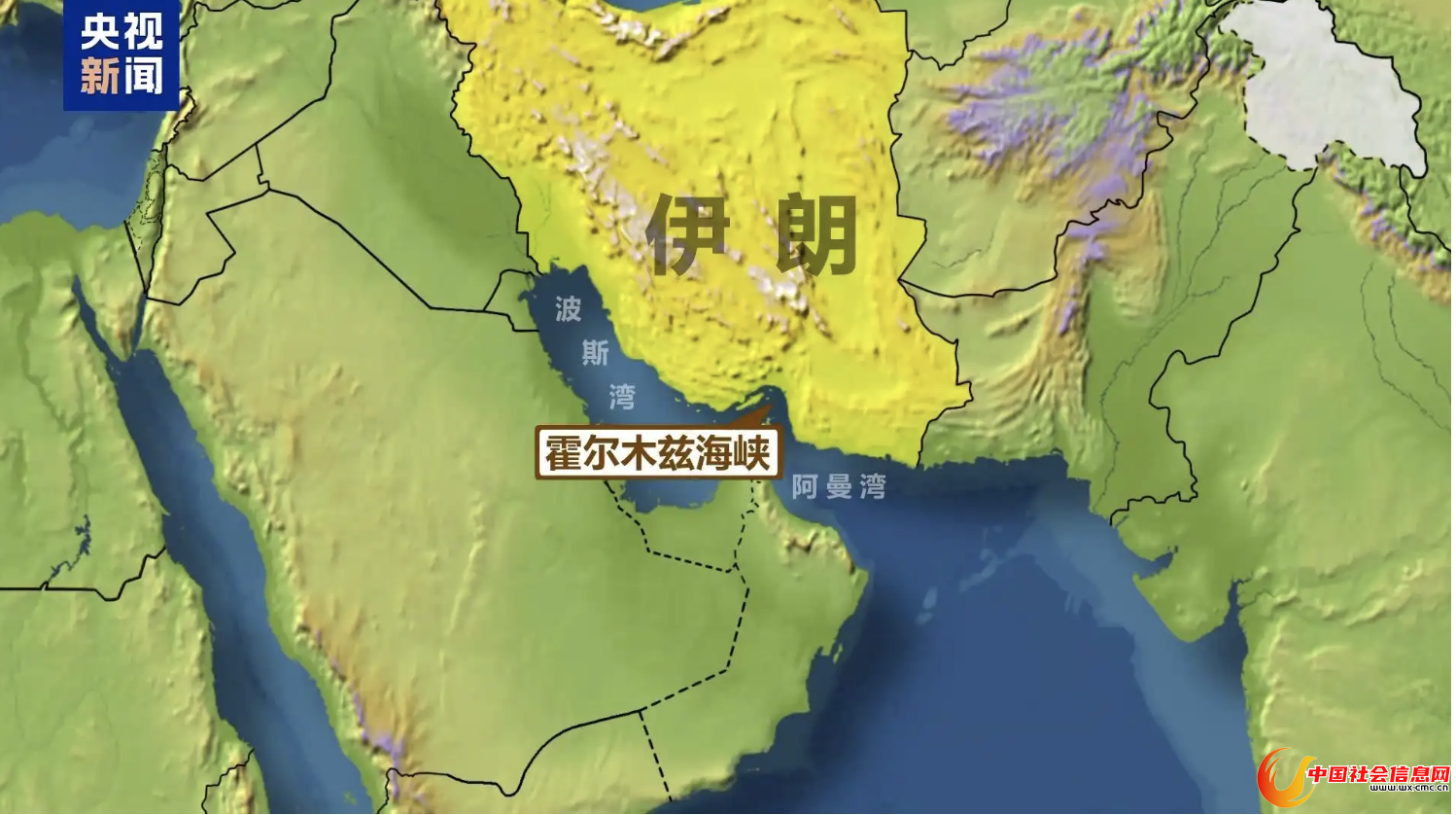 ▲霍尔木兹海峡最窄处仅33公里。(资料图。图据央视新闻)