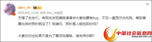 不少网友反映,在抢购鹿晗西安站演唱会门票时,原定18:07为优先权购票、19:07为普通场次抢票,但普通场次抢票时段仍仅开放优先权通道。
