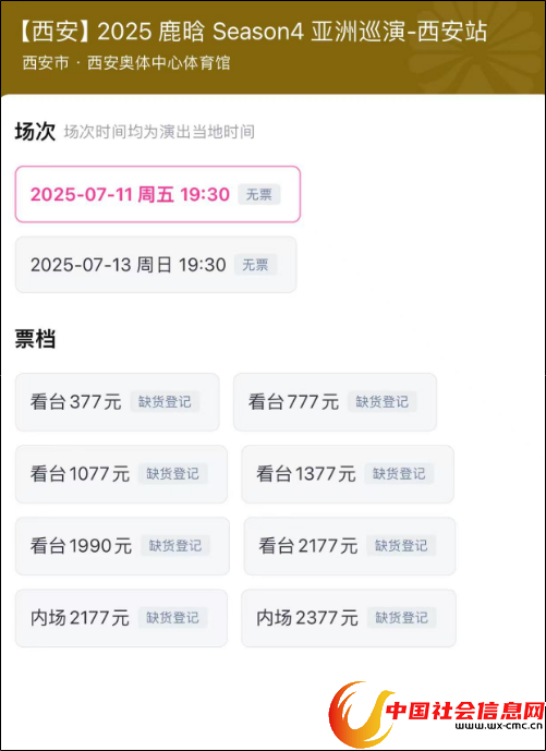 5、2025鹿晗Season4亚洲巡演西安站普通抢票将于6月30日19:07再次开启,合并上述退票,扣除18:07-18:12的已售优先票量后,届时西安站两场可售票量不少于13400张。”