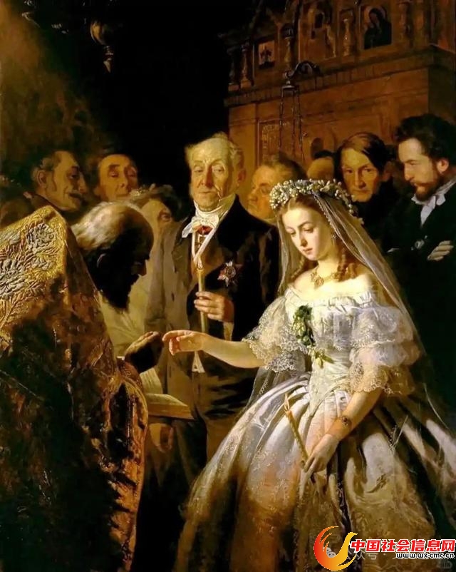 同样的作品还有普基廖夫的《不相称的婚姻》(上图)。一位老年绅士和十几岁的少女在教堂成婚,一道光从穹顶射下来,照亮妙龄女孩儿眼角的泪。这样的画作,在那寂寞年代,怎能不让同样十几岁的我动心?