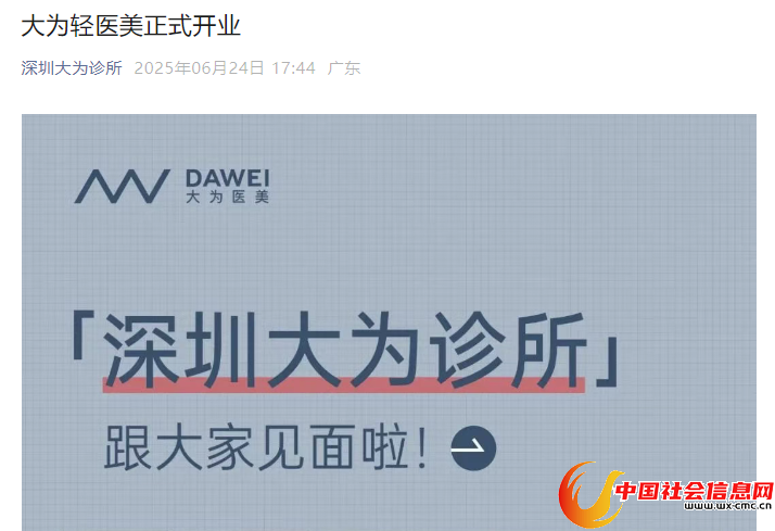 截图自公众号“深圳大为诊所”