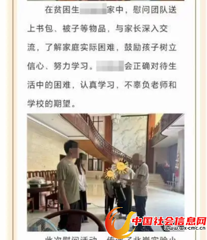 7月2日,福建省莆田市湄洲湾北岸经济开发区实验小学微信公众号发布了一篇慰问贫困生的文章,其中提到“慰问团队送上书包、被子等物品,与家长深入交流,了解家庭实际困难,鼓励孩子树立信心、努力学习……”