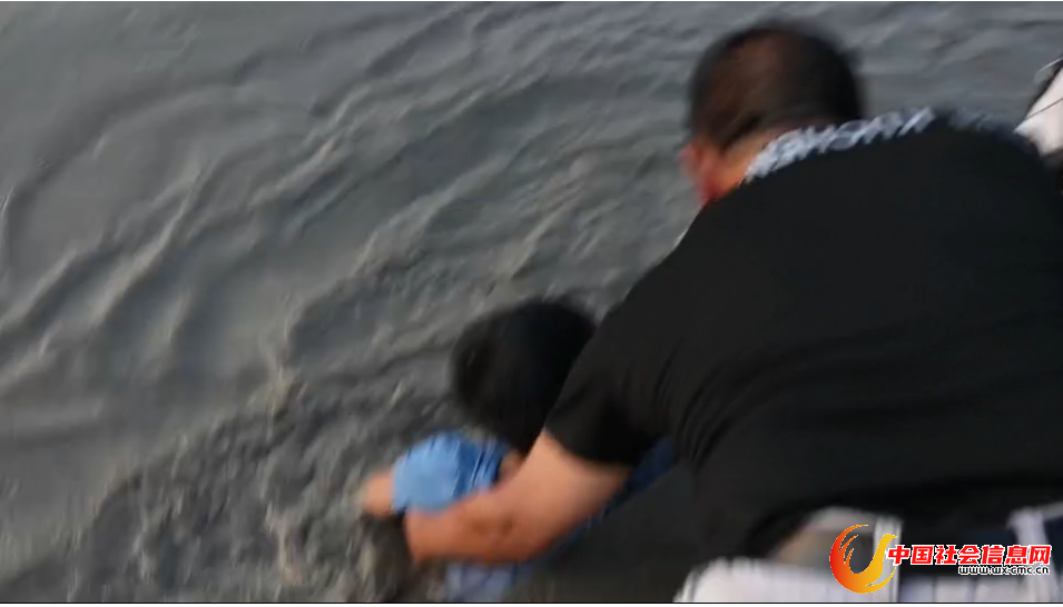 现场目击者拍下了赵成龙救人过程:孩子在江水中沉浮挣扎,很快被江水没过头顶;赵成龙跳进涪江后,在水中奋力划拉,然后伸手抓住孩子,另一只手把住岸边石阶,避免自己和孩子被湍急的水流带走。