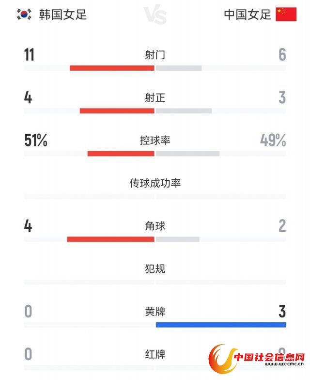 韩国女足全场比赛占据优势,但中国女足的防守反击效率不错。此役,韩国女足采用343的高压防守体系,中国则以541的防守反击阵型应对。从数据看,韩国控球占优但效率不高,中国反击更有威胁。中国女足此役暴露不少问题,尤其是后腰防守硬度不足,在进攻端也缺乏体系支撑。当然,中国女足此役能取得平局,全队的拼劲值得肯定,一分来之不易。