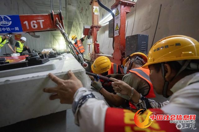 22号线轨道工程方案和工艺采用多项提升措施。道床采用高铁预制轨道板及高精度测控技术,提高轨道平顺性,列车运行时更加平稳,提升乘客乘车舒适度;针对长大区间的运营使用场景,采用高分子轻质材料的水沟模板和高低可调式综合支架进行施工作业,既可保证模板整洁,减少清洗工序,改善施工环境,又使道床排水沟坡度和表面平整性满足要求,确保区间隧道排水系统畅通,从而提升轨道设施的使用寿命。
