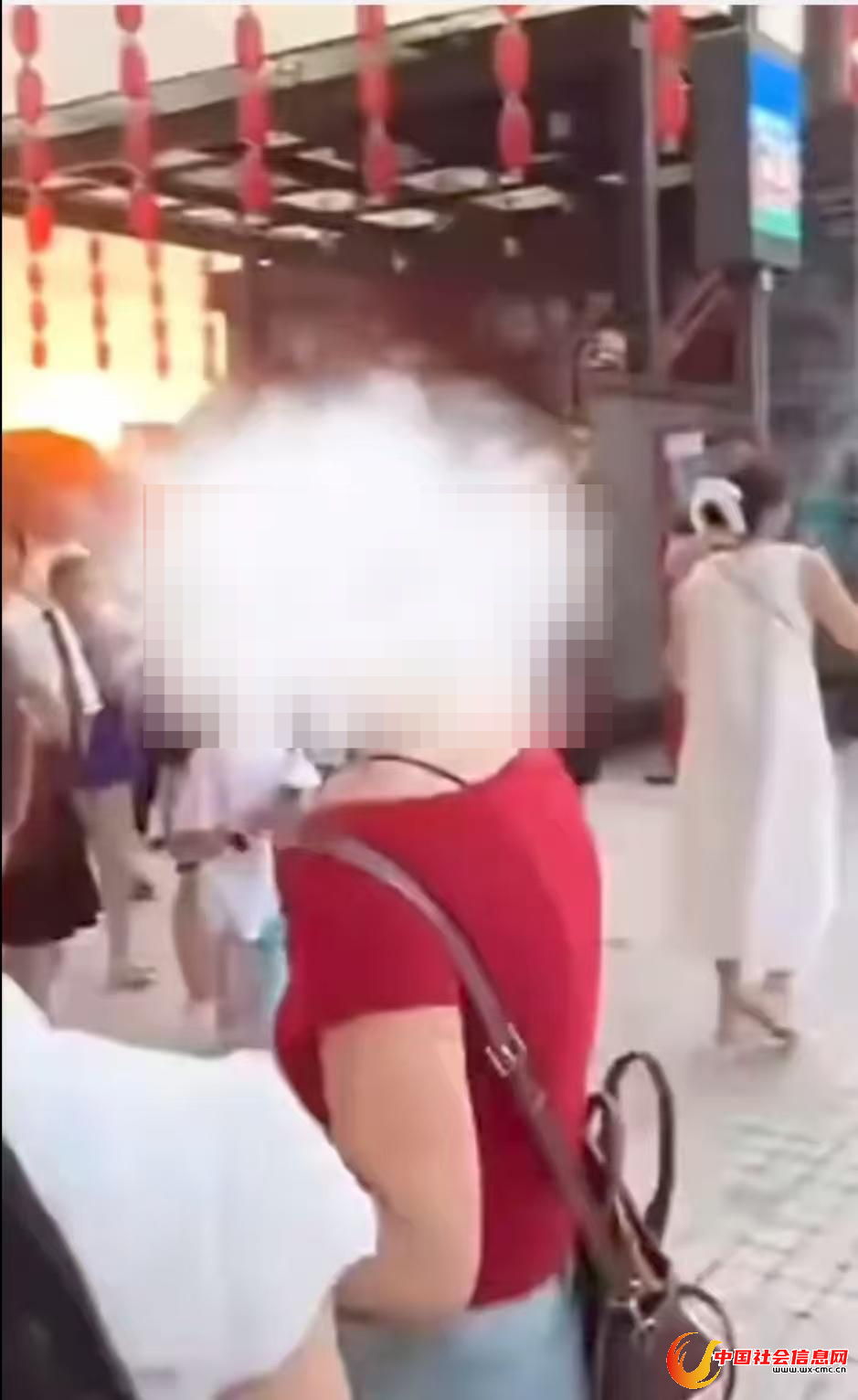 ▲红衣女子疑似强拉游客拍照 视频截图