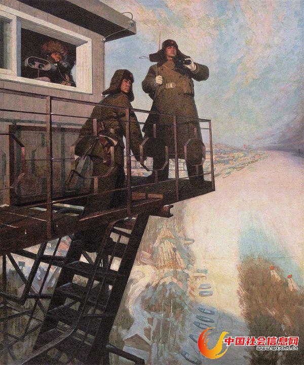 沈嘉蔚,《为我们伟大祖国站岗》,1974,布面油画