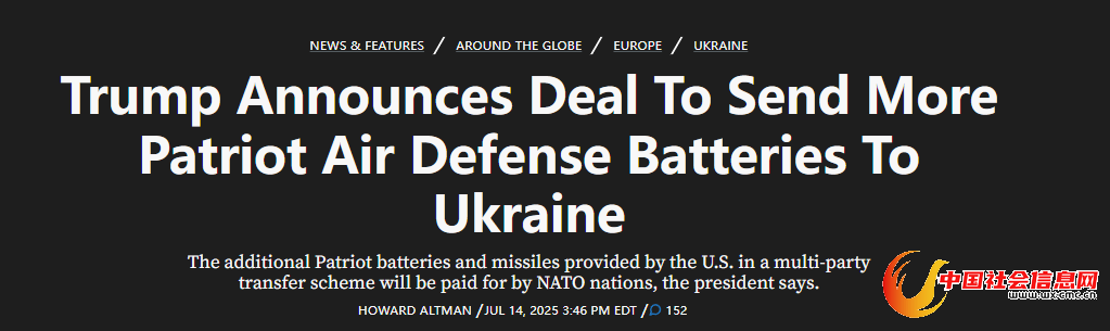 美国总统特朗普14日宣布将通过北约向乌克兰提供“顶级武器”,作为施压俄罗斯尽早结束俄乌冲突的措施之一。其中最受外界关注的举措是,首批美制“爱国者”反导系统 “将在几天内送抵乌克兰”。
